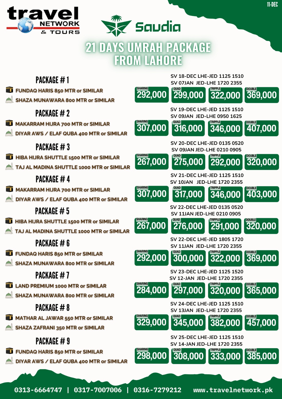 TRAVEL NETWORK (SAUDI AIRLINES) 21 DAYS UMRA PACKAGE NO (02) FROM LAHORE